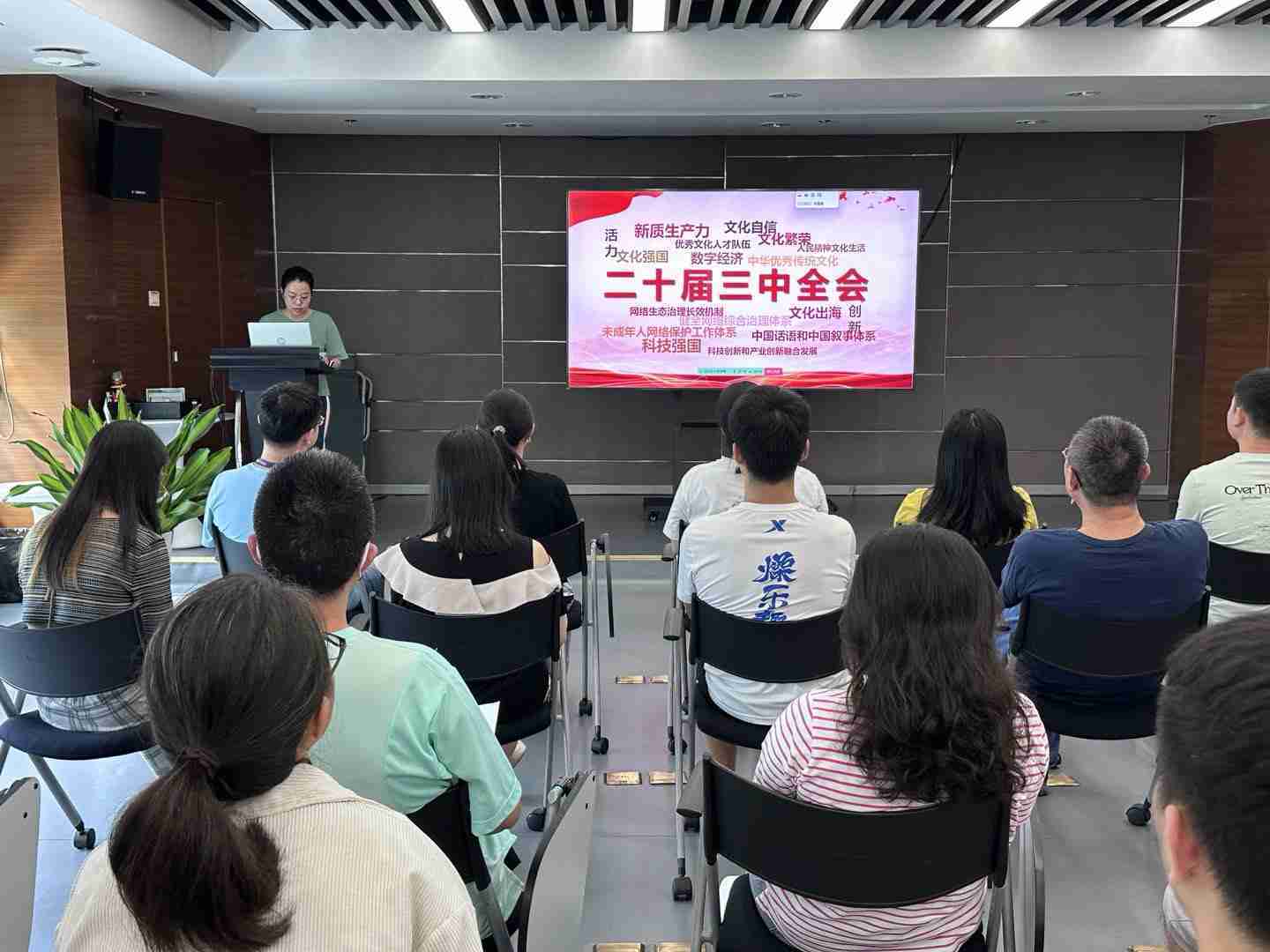 与会人员深入学习《决定》内容。。。。党的二十届三中全会提出必须增强文化自信,,发展社会主义先进文化,,弘扬革命文化,,传承中华优秀传统文化,,加快适应信息技术迅猛发展新形势,,,,构建更有效力的国际传播体系,,这为广大文化产业工作者指明了奋斗方向。。